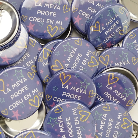 Chapas regalo a alumnos:" La meva profe creu en mi" (PACKS CATALÁN)