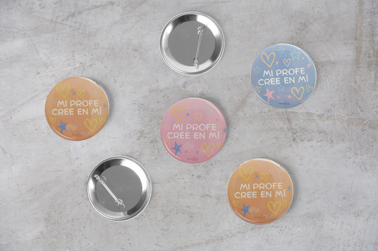 Chapas para regalar a alumnos: "Mi profe cree en mí" (PACKS)