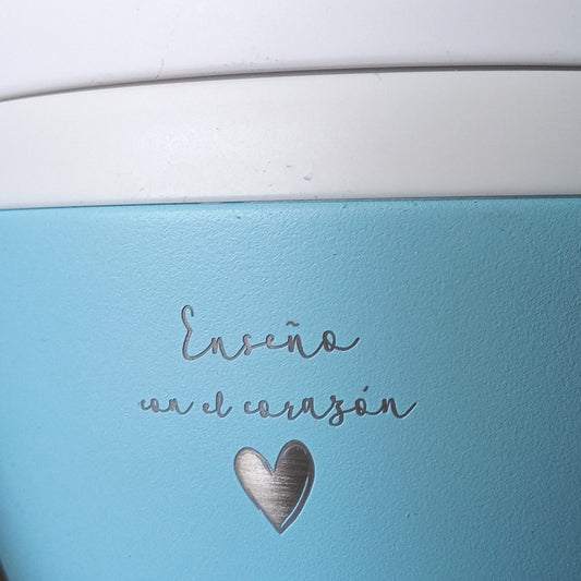 Vaso termo Runbott Cup, Rosa empolvado, "Enseño con el corazón"
