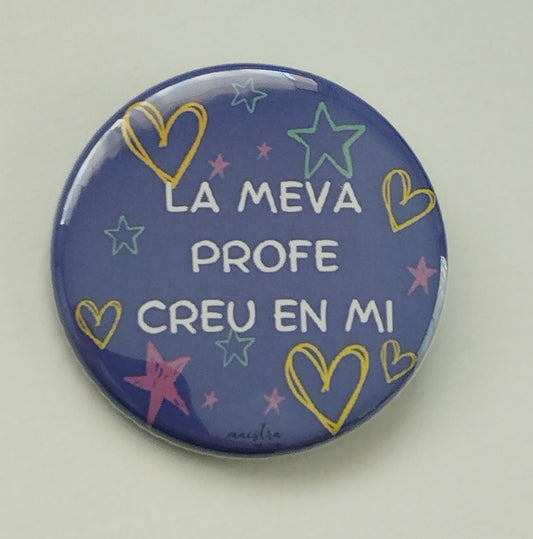 Chapas regalo a alumnos:" La meva profe creu en mi" (PACKS CATALÁN)